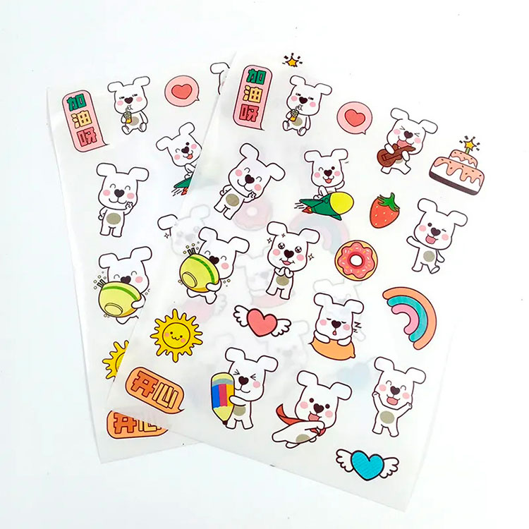 Stiker transparan kartun berkualitas tinggi yang diproduksi oleh pabrikan Cina JOJO Pack memiliki ketahanan aus dan ketahanan gores yang baik. Mereka memiliki sifat tahan air dan tahan lembab yang sangat baik, dan mampu menjaga kejernihan pola untuk waktu yang lama.
