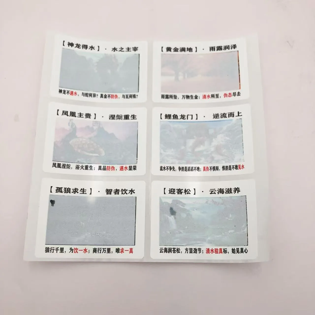 Label sensitif terhadap air yang berubah warna memanfaatkan reaksi fisik atau kimia antara tinta dan air untuk membuat pola tersembunyi terlihat atau memicu perubahan warna. Diproduksi dengan proses dan peralatan khusus, label ini menawarkan fitur anti-pemalsuan yang unggul. Setelah kering, jenis tertentu dapat kembali ke keadaan semula, sehingga memungkinkan penggunaan berulang.