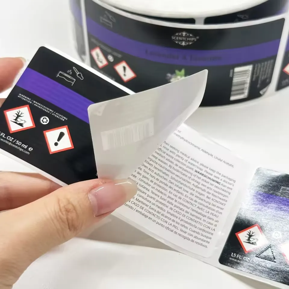 Penggunaan ruang yang efisien:wadah kosmetik sering kali berhubungan dengan highlight desain yang halus dan kabinet, seperti tabung lipstik, esensi botol kecil, kotak eye shadow mini dll., permukaannya dapat area pencetakan terbatas, label multilayer kosmetik melalui perluasan ruang, dengan alasan tidak mengubah tampilan wadah, menyimpan lebih banyak informasi, keseimbangan sempurna tingkat penampilan produk dan integritas informasi.
