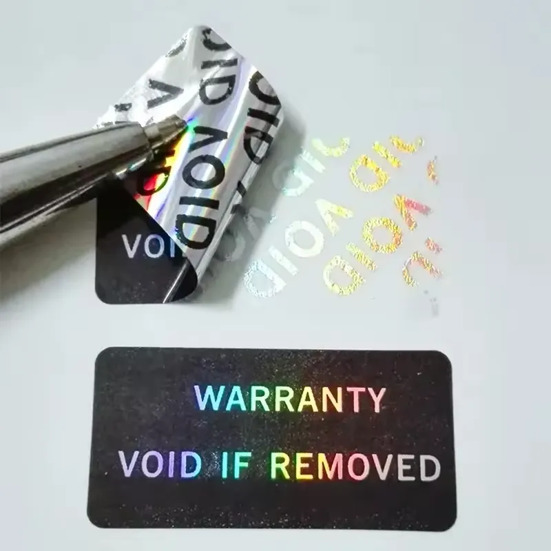 Label keamanan hologrammenampilkan efek optik 3D, dinamis, atau berlapis-lapis di bawah cahaya, yang sulit ditiru tanpa peralatan profesional. Sebagian besar dirancang dengan sifat anti rusak—dapat pecah, meninggalkan residu, atau menunjukkan tanda "VOID" saat terkelupas. Bahan umum termasuk poliester atau film, diintegrasikan dengan foil holografik atau kisi difraksi selama produksi.