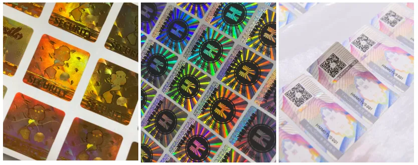 Label keamanan hologrammemberikan perlindungan anti-pemalsuan untuk produk. Label hologram adalah label berperekat yang dibuat dengan melaminasi film holografik ke atas kertas untuk menciptakan efek visual 3D. Mereka digunakan dalam kosmetik, produk elektronik, pengemasan, dan bidang lainnya, yang dapat meningkatkan pengenalan merek dan memberikan perlindungan anti-pemalsuan. Konten visual termasuk label hologram menggunakan efek visual dinamis yang berubah seiring perubahan sudut pandang, sehingga sulit untuk ditiru. Label keamanan hologram menunjukkan kinerja unggul dalam kondisi cahaya redup. Bahkan di lingkungan dengan pencahayaan redup, penanda holografik tetap terlihat.