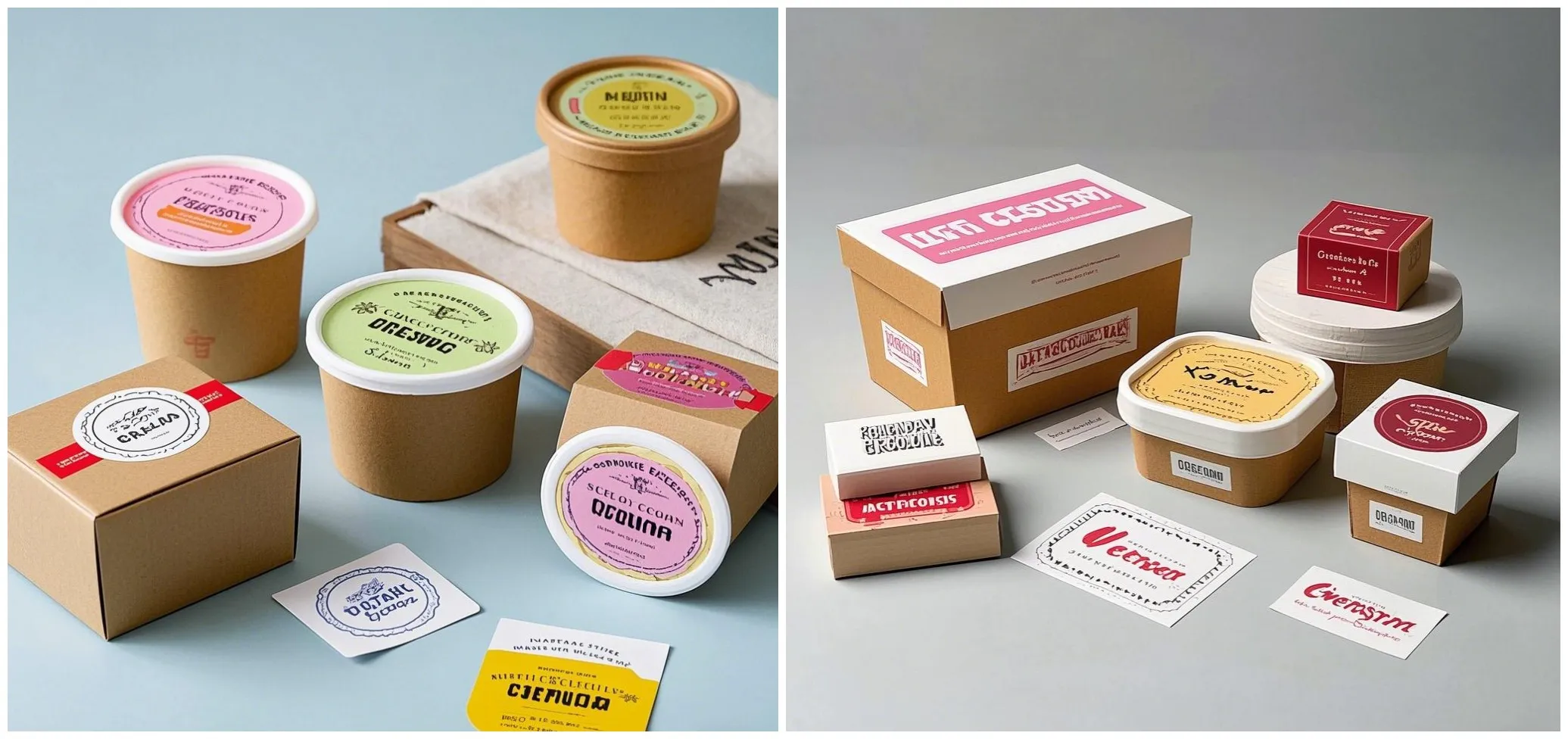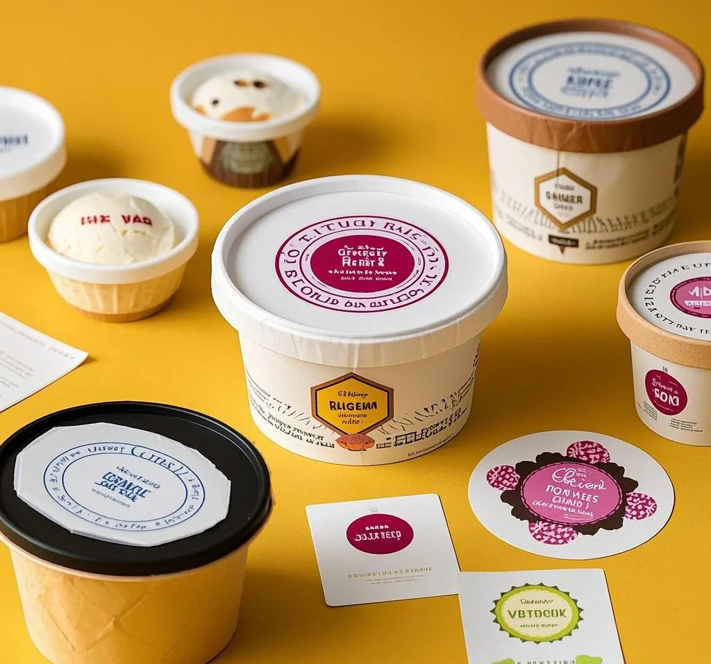 Berbagai bentuk:Label es krimSeperti bentuk bulat, oval, persegi, dan lainnya juga dapat disesuaikan sesuai dengan kebutuhan pelanggan.