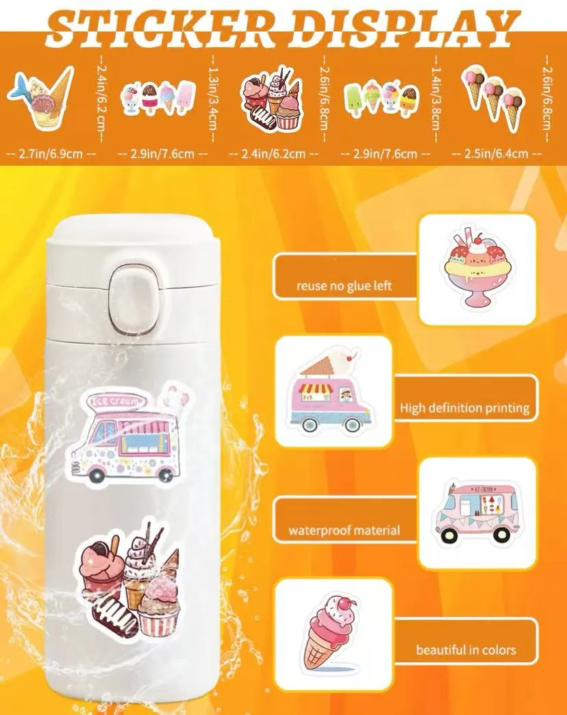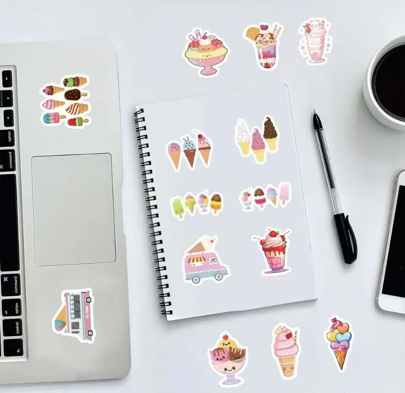 Stiker es krim yang diproduksi oleh Jojo Pack ini. Ini fitur elemen es krim yang berbeda dan setiap stiker tampaknya memancarkan aroma yang sejuk dan manis, langsung menanamkan barang -barang Anda dengan vitalitas musim panas.