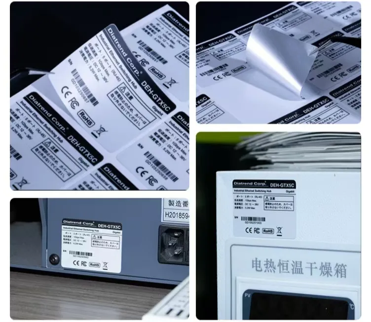 PET putih/perak matte: Tahan panas hingga 150℃, cocok untuk papan nama pada peralatan rumah tangga dan adaptor daya.