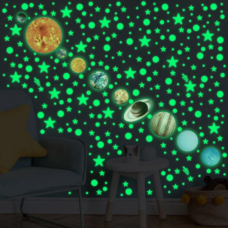 Ketika elektron dalam bahan luminescent kembali ke keadaan stabil, mereka melepaskan energi yang sebelumnya diserap, yang disertai dengan emisi foton. Foton ini adalah cahaya yang terlihat yang bisa kita lihat. Karena stiker bercahaya mengandung sejumlah besar bahan bercahaya seperti itu, mereka bekerja bersama untuk terus melepaskan cahaya lemah, memungkinkan stiker untuk bersinar dalam gelap.