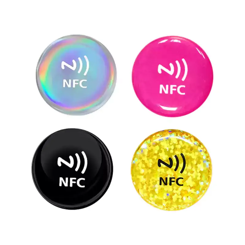 Ukuran dan bentuk: Stiker NFC kecil. Mereka sering bulat dan seukuran koin. Satu sisi memiliki lem, sehingga Anda dapat dengan mudah menempelkannya pada hal -hal seperti poster, gelang, atau kartu nama.