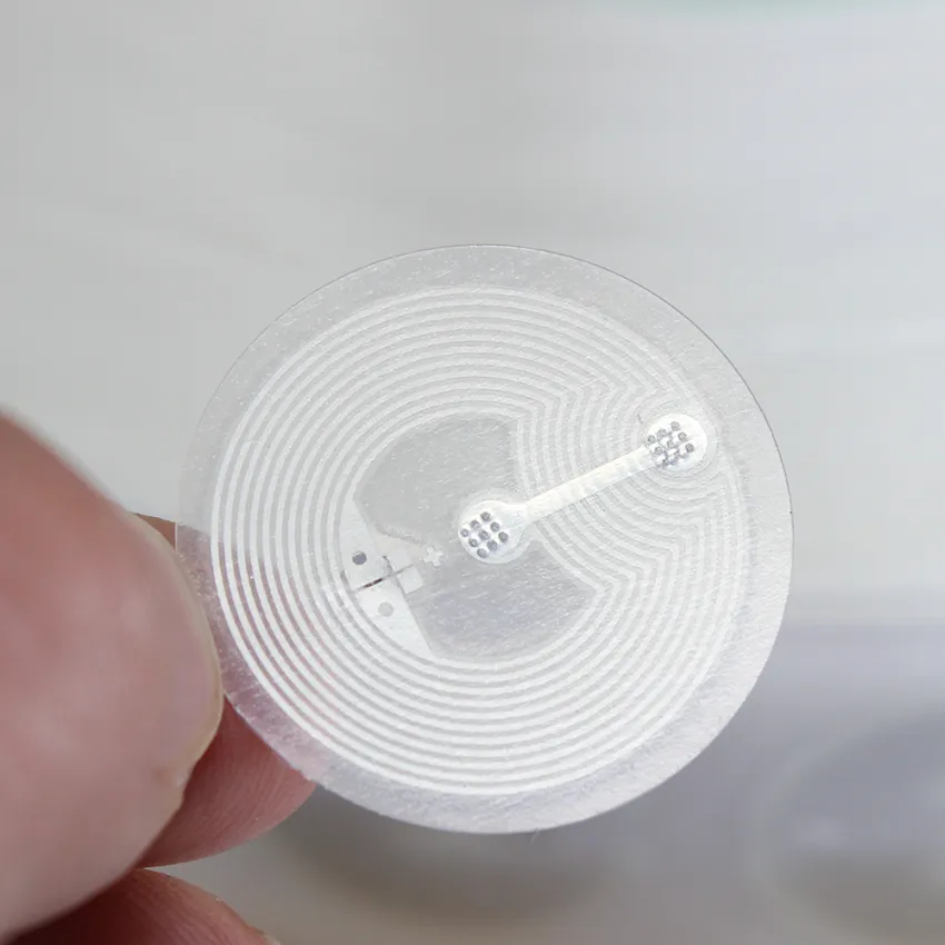 Stiker NFC memiliki dua bagian kecil: chip kecil untuk menyimpan data