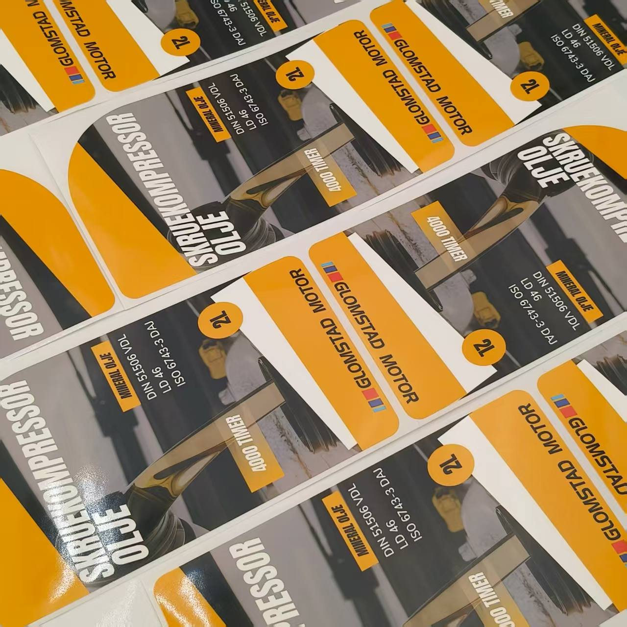 Pemilihan Bahan: JOJO Pack menggunakan bahan berkualitas tinggi seperti Poliester, Polipropilena, atau Vinyl sebagai bahan dasar label. Poliester memiliki stabilitas kimia yang sangat baik dan ketahanan terhadap suhu tinggi, mempertahankan sifat fisik yang baik bahkan di lingkungan bersuhu tinggi. Polypropylene menawarkan efektivitas biaya tinggi dan ketahanan yang baik terhadap bahan kimia dan kelembapan, sehingga secara efektif mencegah label rusak karena kelembapan. Vinyl memiliki kelenturan dan daya tahan yang sangat baik sehingga cocok untuk wadah oli mesin berbagai bentuk. Selain itu, kami menggunakan perekat khusus tahan minyak untuk memastikan label menempel kuat pada permukaan wadah dan tidak rontok akibat terkikis oli mesin.