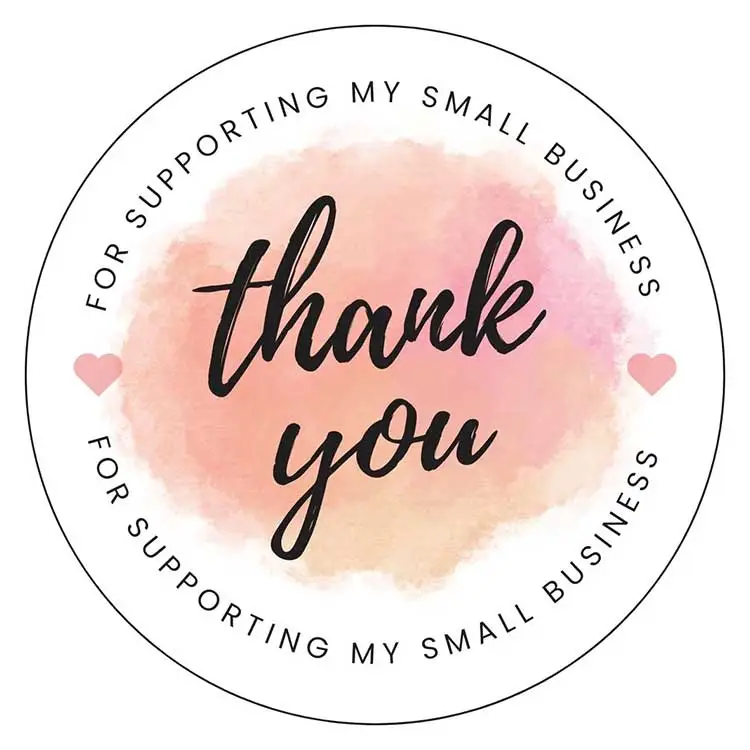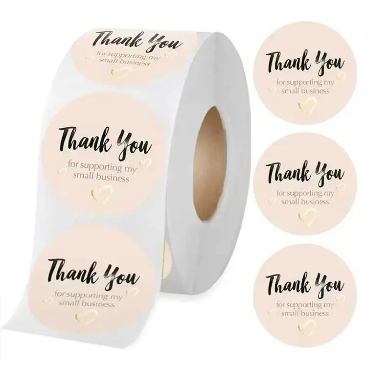 Ukuran stiker terima kasih mendukung penyesuaian, dan bentuknya meliputi lingkaran, persegi, dan bentuk khusus (hati, bintang, bentuk logo merek khusus), yang dapat memenuhi kebutuhan adaptasi kemasan yang berbeda.