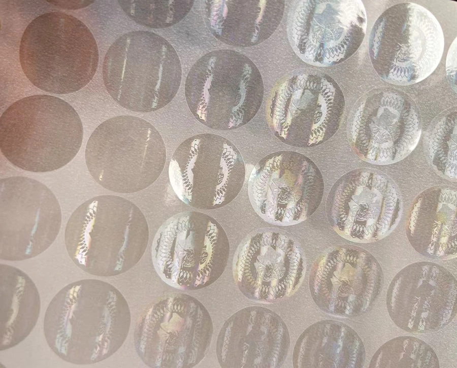 Pola HOLOGRAPHN PANAS PANAS PRESS TRANSFER: Peralatan pencetakan dengan templat logam dipanaskan dengan suhu tertentu dan mengalami tekanan yang dikendalikan dengan tepat. Selanjutnya, bahan vinil dengan pola biasa yang sudah dicetak dipatuhi erat pada templat logam. Proses ini tidak hanya memastikan bahwa pola holografik melekat kuat pada label tetapi juga menjamin presentasi sempurna dari detail pola dan tiga dimensi. Dari sudut yang berbeda, dapat menampilkan efek brilian yang unik seperti pelangi.